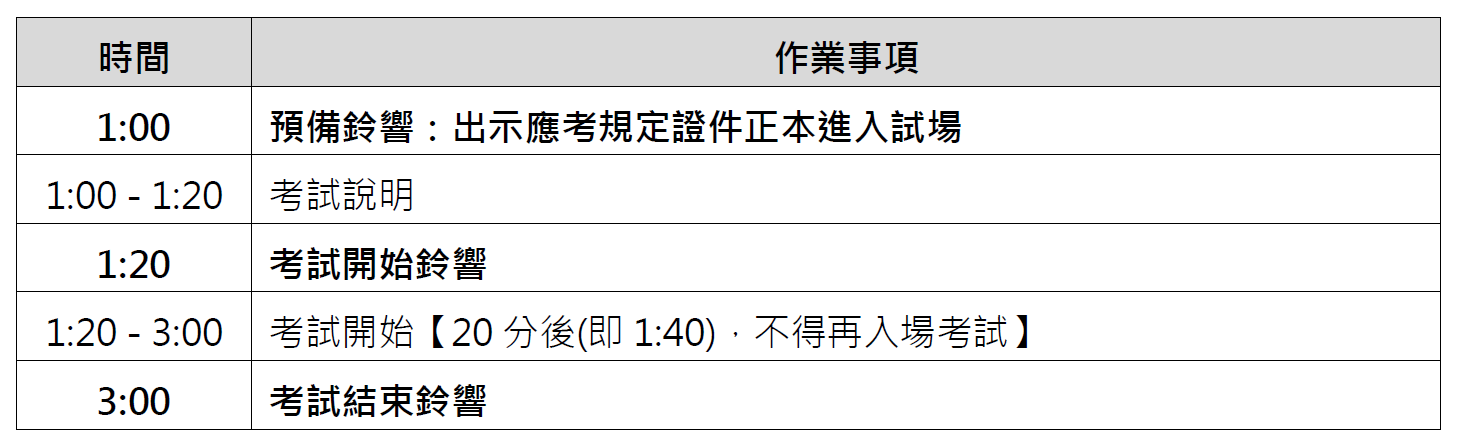 ※持非有效應試證件考生,扣個人成績20分※